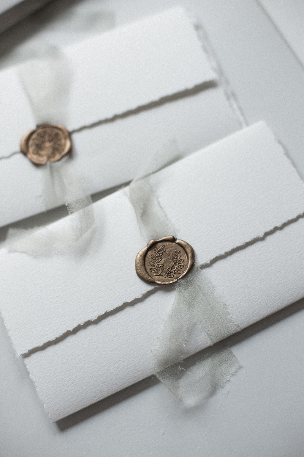 26. April 2017 In Nicnillas Ink-invitation with silk ribbon and wax seal-9 How to seal a wedding invitation with silk ribbon and a wax seal without having the seal attatched to the paper.